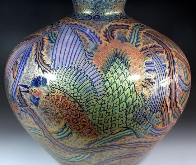 The vase features a majestic phoenix (Hōō) motif, a symbol of beauty, peace, and prosperity in Japanese culture.