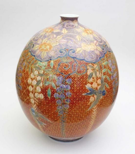 Arita Porcelain Vase ¡ÈWisteria & Swallow¡É by Kinsai Fujii
