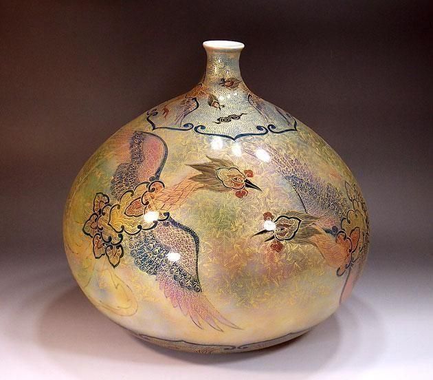 The Phoenix (Hōō) is a mythical bird that appears only in peaceful times and is said to bring good fortune and harmony. Its elegant form and radiant colors make this vase a perfect centerpiece for any sophisticated interior or as a special gift symbolizing prosperity and longevity.