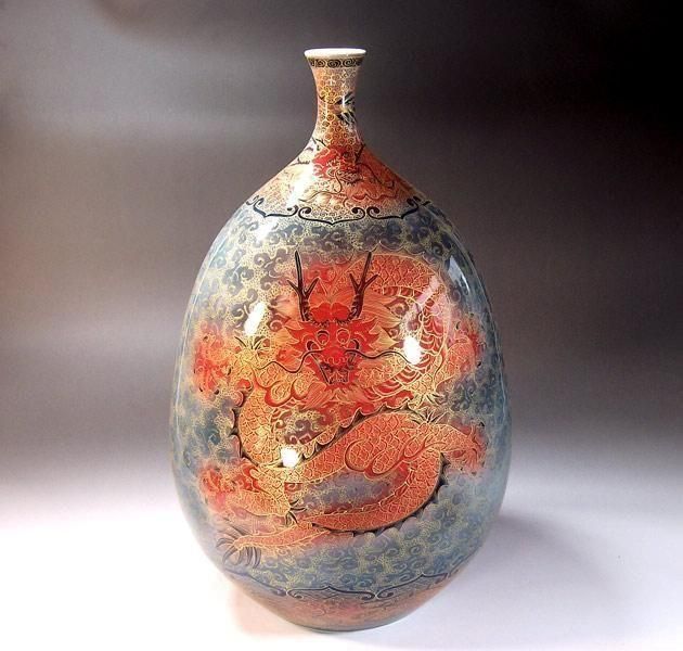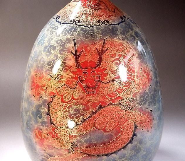 Japanese Traditional Arita Porcelain Dragon Vase by Ceramic Artist Kinsai Fujii