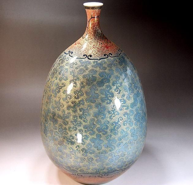 This is a unique, hand-painted dragon vase by the renowned Arita porcelain artist Kinsai Fujii. Standing at 36 cm tall with a diameter of 22.4 cm, this vase commands attention with its impressive presence. Every detail of the dragon design is meticulously hand-painted, combining strength and elegance in one masterpiece.