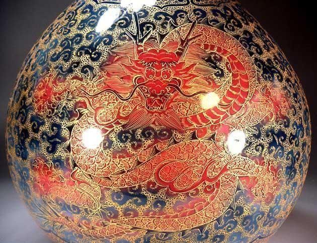 Japanese Traditional Craft: Arita Ware Dragon Vase by Ceramic Artist Kinsai Fujii
