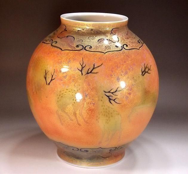 Discover the timeless elegance of Arita porcelain, one of Japan¡Çs most celebrated traditional crafts, with this exquisite hand-painted deer vase by renowned ceramic artist Kinsai Fujii.