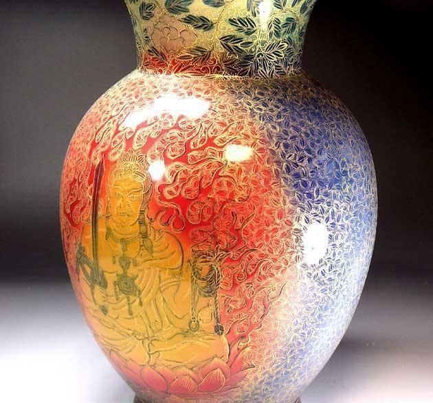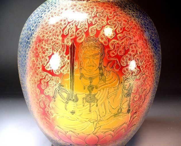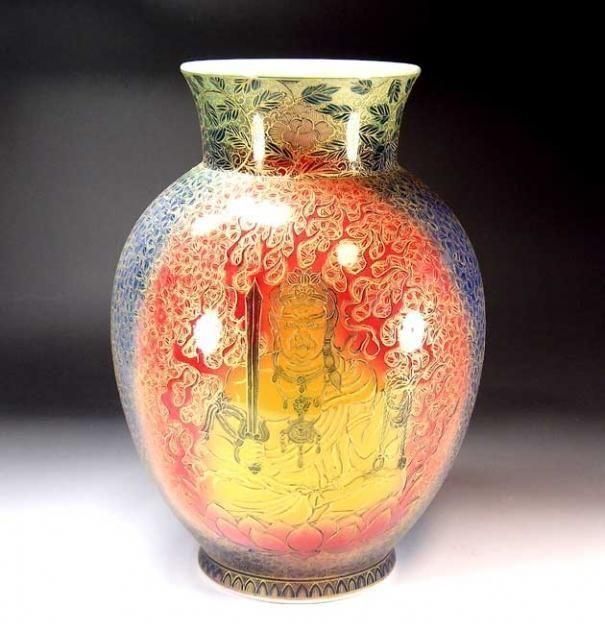 Arita Ware Painted Jar of Fudō Myōō by Kinsai Fujii